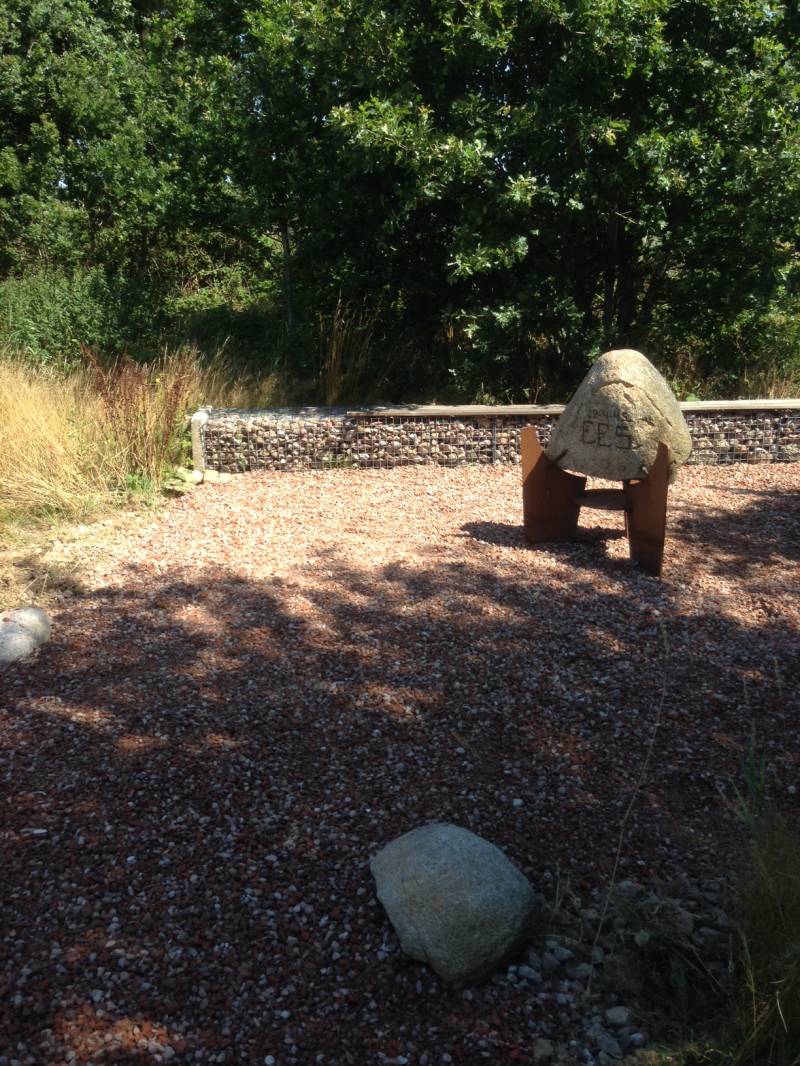 De gedenksteen staat op een metalen onderstel en er omheen is een hoekbank gecreëerd, gemaakt van gestorte keien. Een rustplek. Een plek om stil te staan bij het verleden. Een plek om te denken aan vele jonge mannen die hun leven gaven voor onze bevrijding.