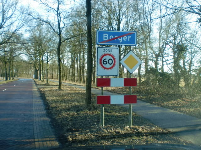 De weg tussen Ees en Borger is een 60 km weg geworden. Ter hoogte van het uitkijkplateau krijgen de klinkers een andere kleur. Het is de bedoeling om de witte strepen te verwijderen en het wegbeeld te veranderen, zodat er rustig gereden wordt.